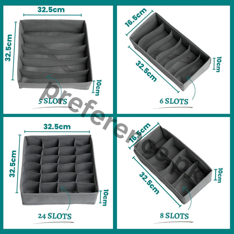 - Set of 4: Includes different compartment layouts to suit various organizing needs.